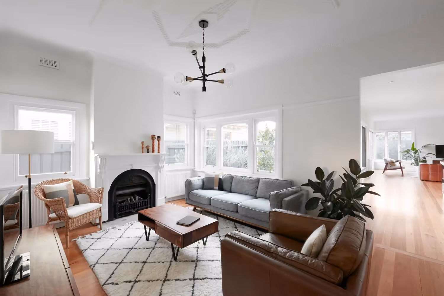 From the new pristine second bathroom with its crisp white tiled walls and floating vanity to the light filled spacious living area and simple Scandinavian inspired two toned kitchen, the new addition was seamless.