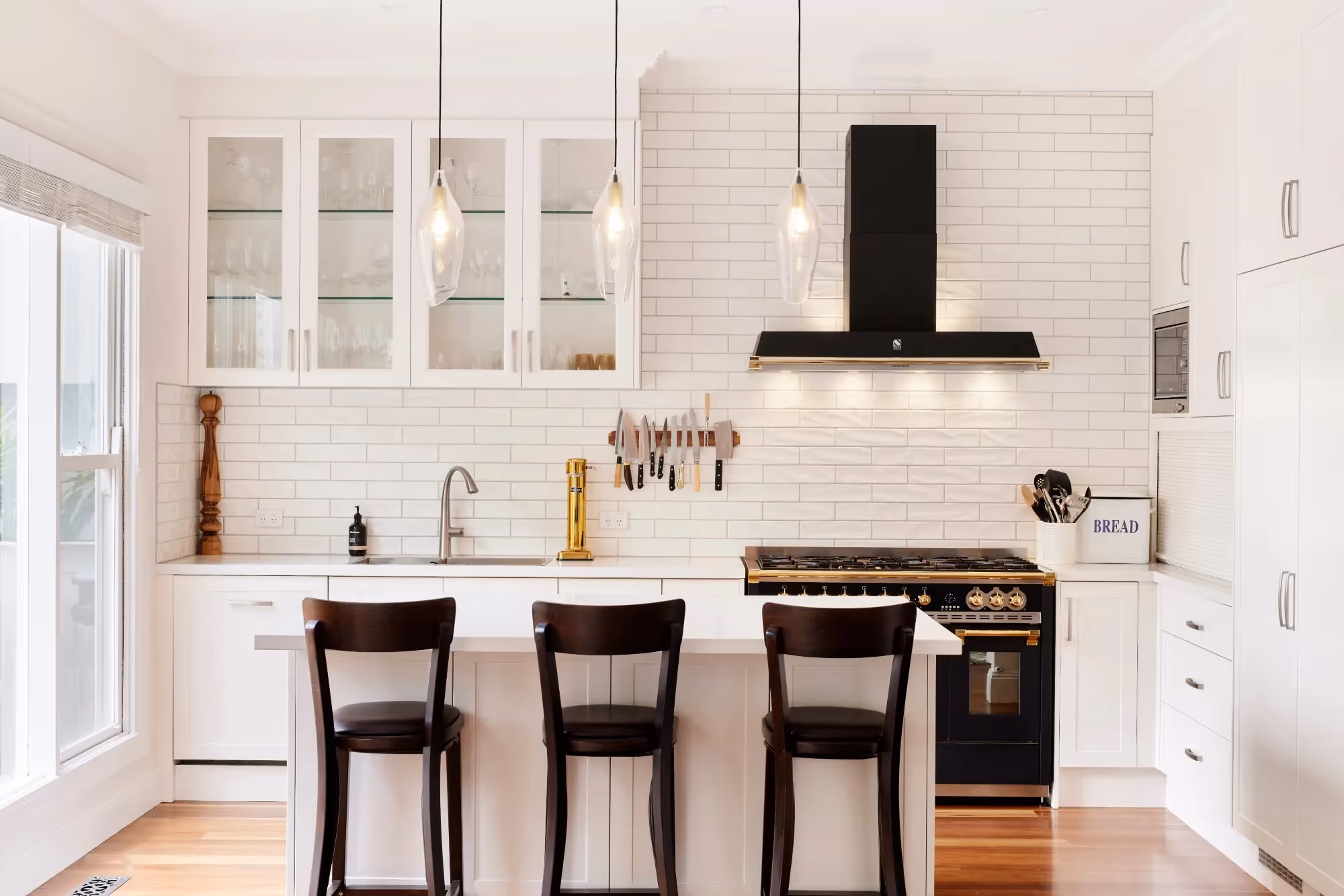 With several large vertical timber windows adorning the north facing wall, the open area was airy and light filled. The stylish kitchenarea was perfectly sized, a contemporary design with a touch of Frenchprovincial boasting a commercial grade cooktop, plenty of storage and even afull sized dual zoned wine fridge for the wine lovers.