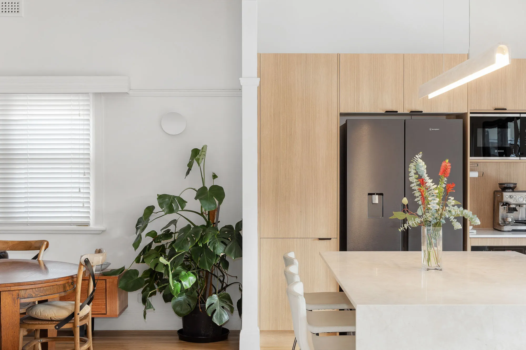 The intention had always been to extend and renovate when the clients purchased the home. The objective was to have a design that would give them the comfort of contemporary living whilst preserving and celebrating the original homes’ features. In a beautiful tree-lined street consisting of a full row of bank houses, maintaining the façade to compliment the streetscape was also important.